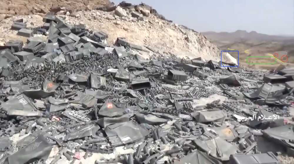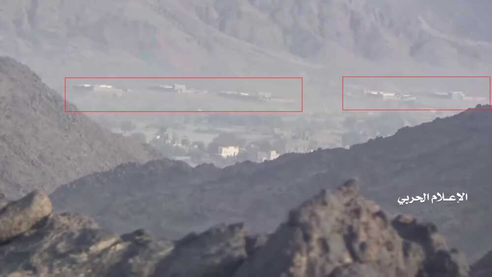 Een fragment van deze Houthi video toont van 11:55 tot 13:01 de vernietiging van een Saudi positie op de berg ten noorden van de Alfare vallei nabij een eerder vernietigde pyloon. Deze positie en de pyloon kunnen gelokaliseerd worden op Google Maps.